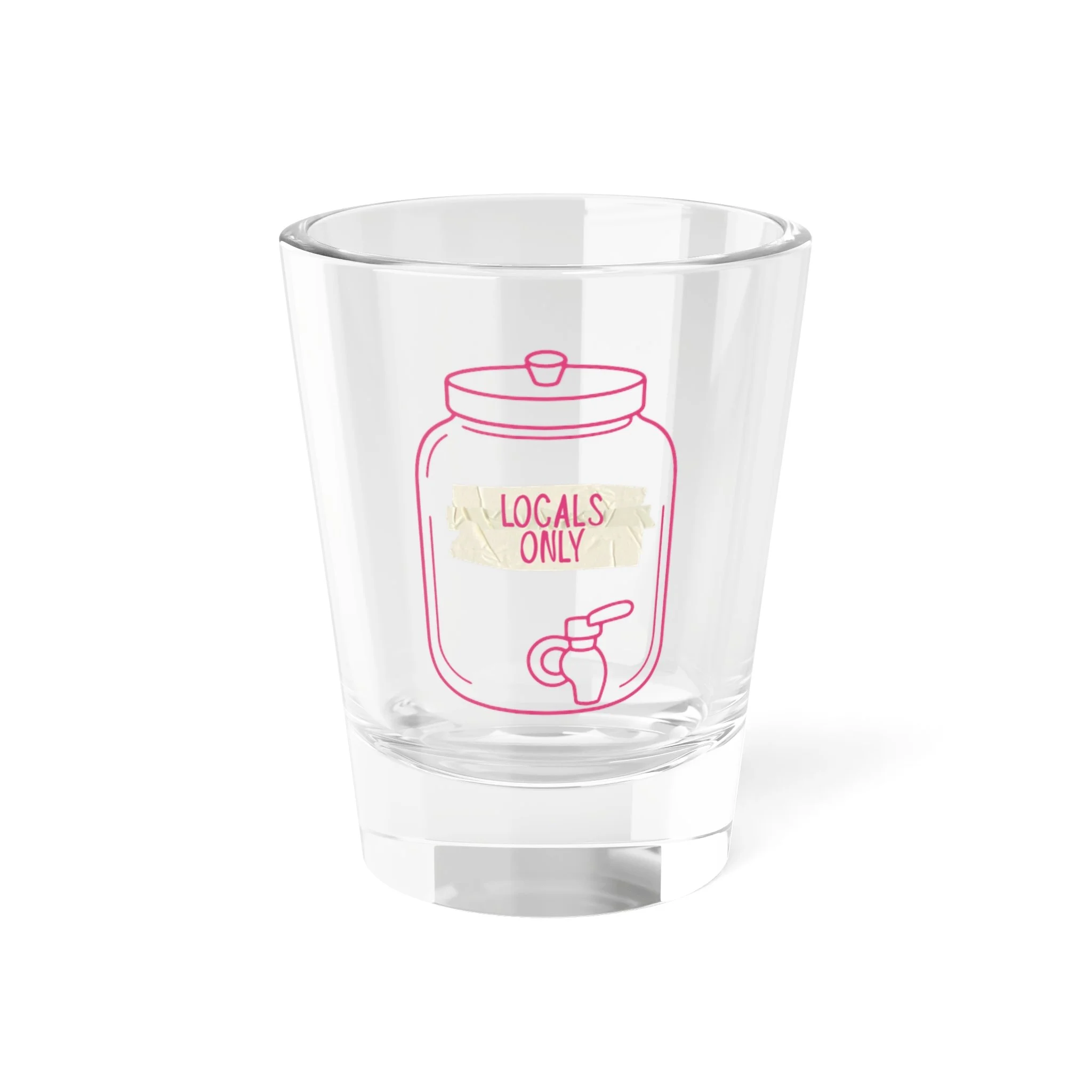 This compact 1.5oz shot glass brings playful charm to small pours and big memories. Printed on clear, restaurant-grade glass with a heavy solid base, it feels weighty in the hand and sits steady on the bar. The artwork — a cheeky, hand-drawn dispenser labeled “Locals Only” in soft pinks and cream — reads like a wink from a favorite neighborhood spot. Dishwasher-safe and printed with vibrant, fade-resistant inks, it keeps its crisp colors through regular use. Use it for quick toasts, tasting flights, or to add a touch of personality to a home bar or party setup.